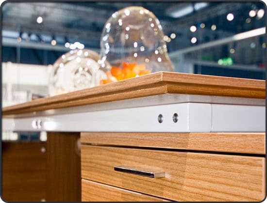 Edges: The same material can be applied to a panel’s face and edges. Furniture manufacturers often make profile-wrapped mouldings from the same papers and glue them to the panel edges. Foils and lightweight papers are often used to wrap the contoured edges of panels with TFL surfaces.